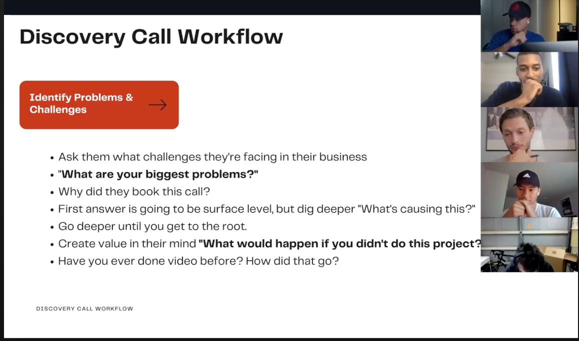 We have full workflows built out for our Discovery Meetings and Sales Meetings. We also have a proprietary way of pitching and closing clients.